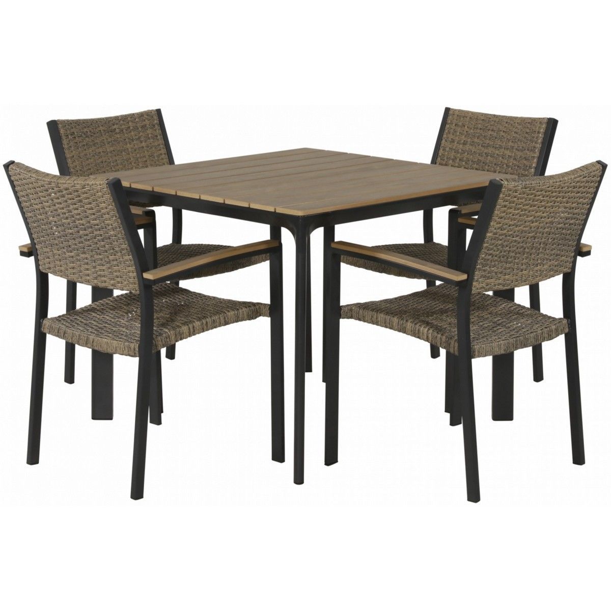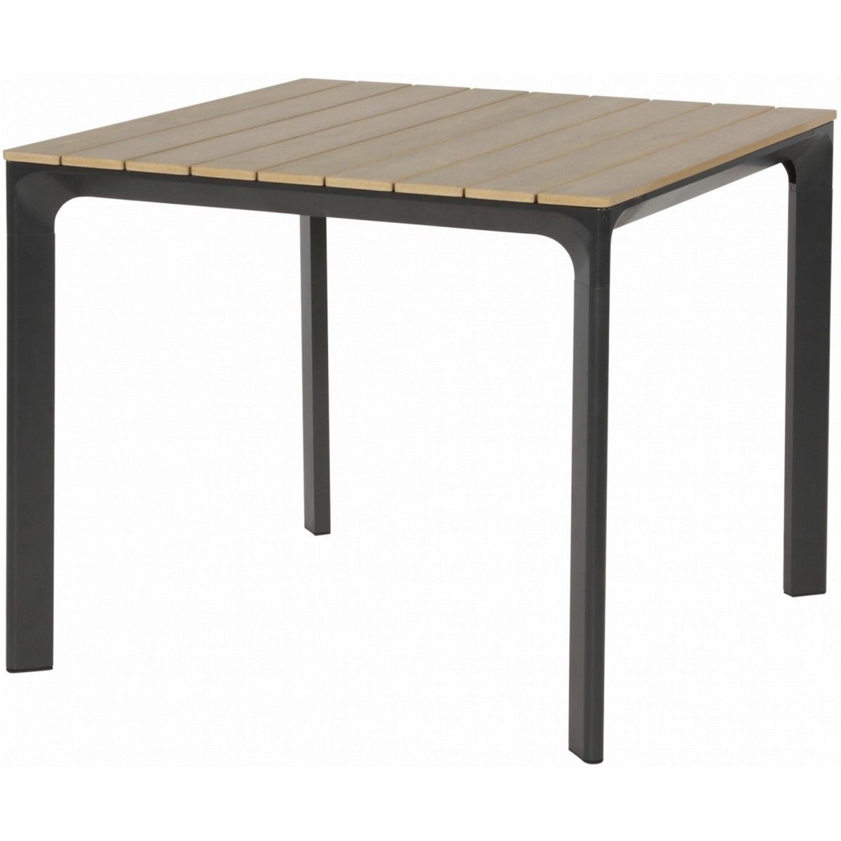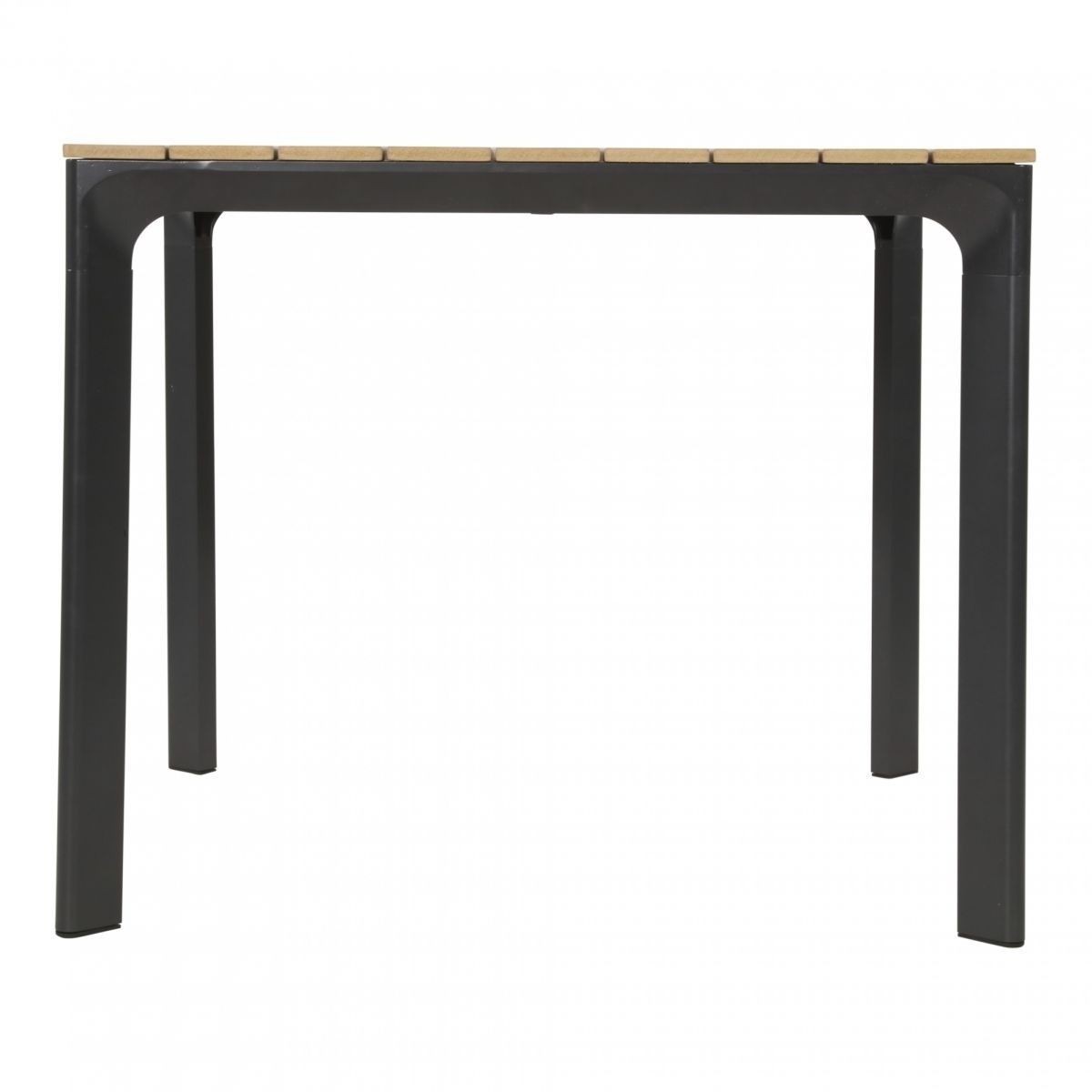 Terrastafel Arezzo is verkrijgbaar in drie verschillende formaten waardoor er gemakkelijk één variant bij uw wensen past! Deze terrastafel heeft een afmeting van 90x90 cm en heeft een onderstel dat bestaat uit vier donkergrijze aluminium poten. Het tafelblad is uitgevoerd in polywood met een natuurlijke teakhouten look, waardoor deze tafel een stijlvolle uitstraling krijgt. Combineer deze terrastafel ook met de bijpassende terrasstoelen en maak de set compleet. Polywood is een 100% kunstmatig alternatief voor hout. Dit materiaal kan net als hout gaan werken, waardoor onregelmatigheden in het blad niet te voorkomen zijn.
