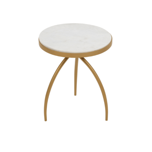 Deze chique Bijzettafel Kay Ø40 cm - wit marmer komt uit de collectie van Starfurn. Het tafelblad is gemaakt van wit marmer, wat in combinatie met het goudkleurige metalen onderstel een stijlvol en elegant design creëert.