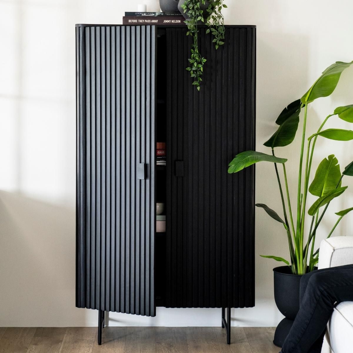 Voeg een vleugje elegantie toe aan je interieur met het Eleonora Kabinet Remi 2-deurs - 170x96 cm. Dit prachtige kabinet, verkrijgbaar in zowel bruin als zwart, belichaamt de kenmerkende stijl van het woonmerk Eleonora.