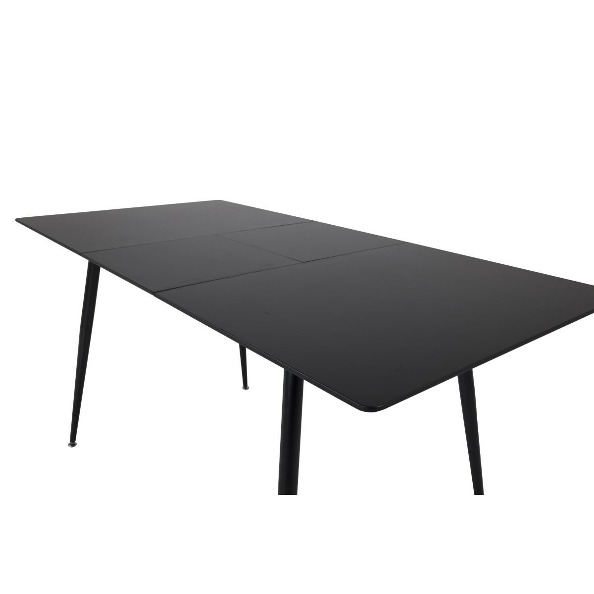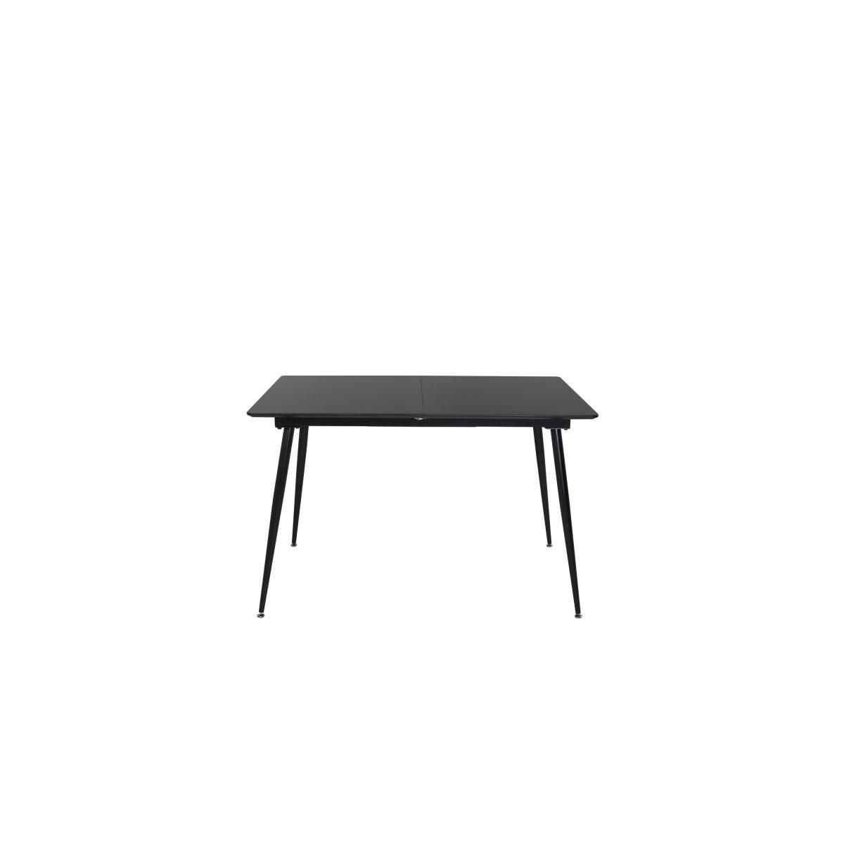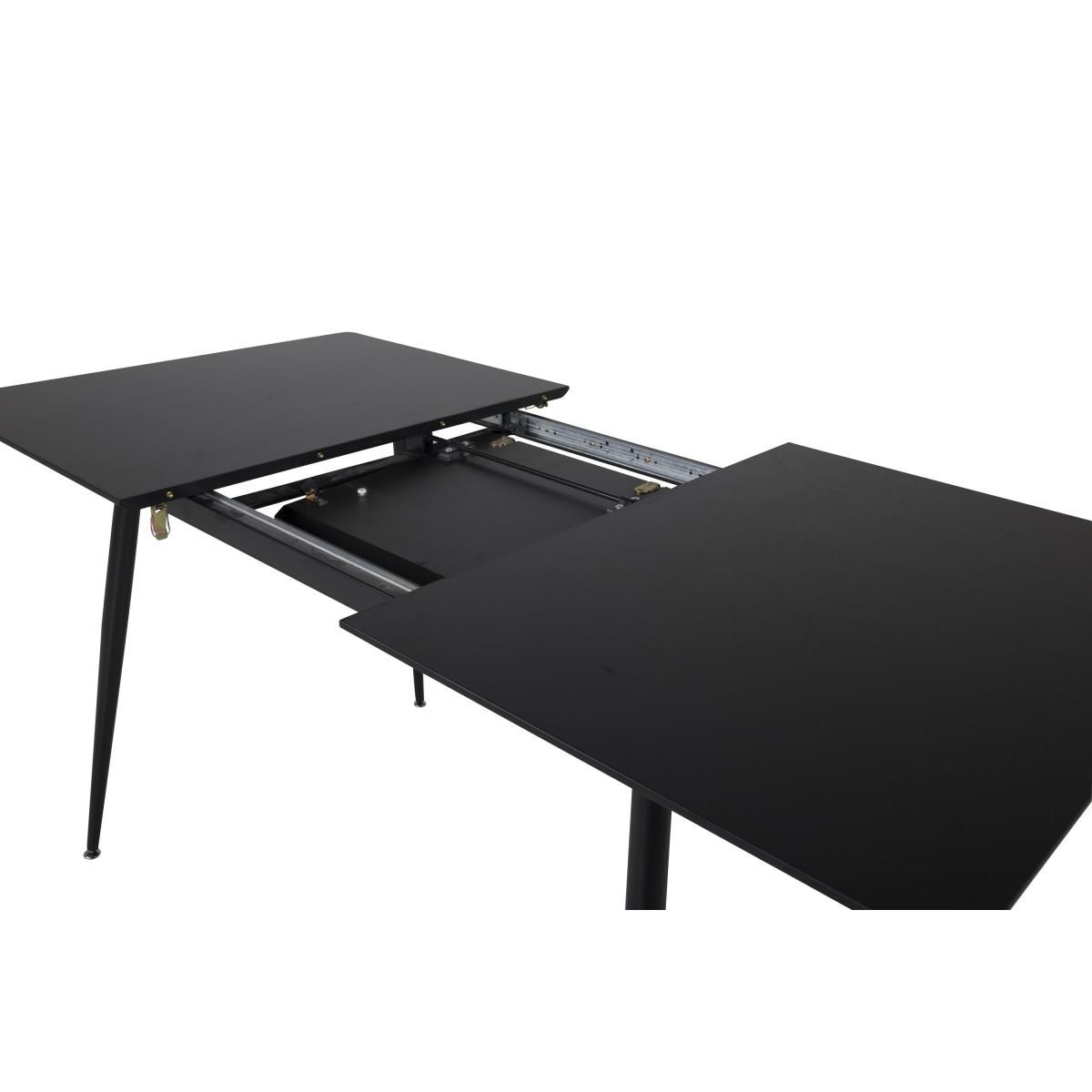 Deze uitschuifbare eettafel is uitgevoerd in een elegante zwarte kleur en heeft een afmeting van 120/160 x 80 cm. Het slimme ontwerp maakt deze tafel tot een praktische en stijlvolle toevoeging aan uw eetkamer of keuken.