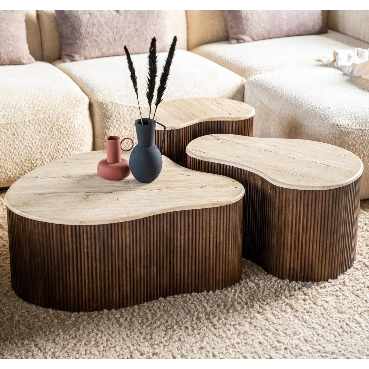 Gemaakt van hoogwaardig mango hout en voorzien van een travertin tafelblad, straalt de Mari bijzettafel vakmanschap uit. Het organische ontwerp geeft een uniek karakter aan deze functionele toevoeging aan je woonruimte.