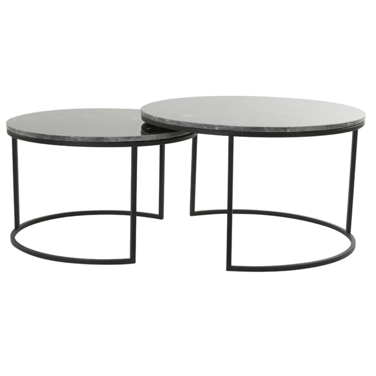 Bent u opzoek naar een echte eyecatcher voor bij uw bank, in uw woonkamer of ergens anders in huis? Dan is deze salontafelset de ideale keuze! Salontafel Alfio bestaat uit twee aparte tafels. De tafels kunnen, door het open onderstel, gemakkelijk onder elkaar geschoven worden of apart van elkaar gebruikt kunnen worden. Dit maakt deze salontafelset niet alleen een genot om naar te kijken maar ook multi inzetbaar. Beide tafels hebben een blad van marmer, in een bruin/zwarte kleur. Het onderstel is gemaakt van metaal en afgewerkt in mat zwart. Dit geeft Alfio een luxeuze en chique uitstraling. Door het gebruik van neutrale kleuren past Alfio in diverse interieurstijlen.